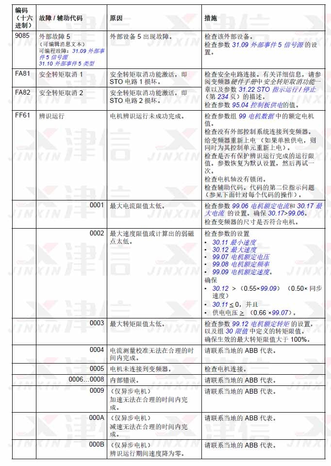 1. ABB ACS580變頻器故障代碼9085,Fa82,FA83,FF61,FF63,FF81,FF8E