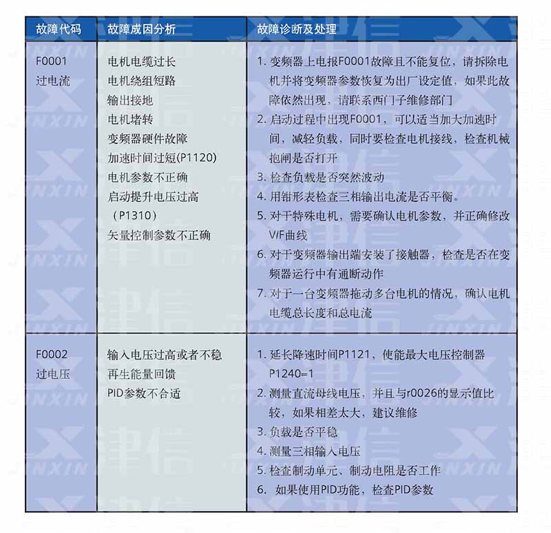 二、F0003欠電壓,F0004變頻器過溫,F0005變頻器過載,F0011電機過熱,F0022功率組件故障,F0041,F0042