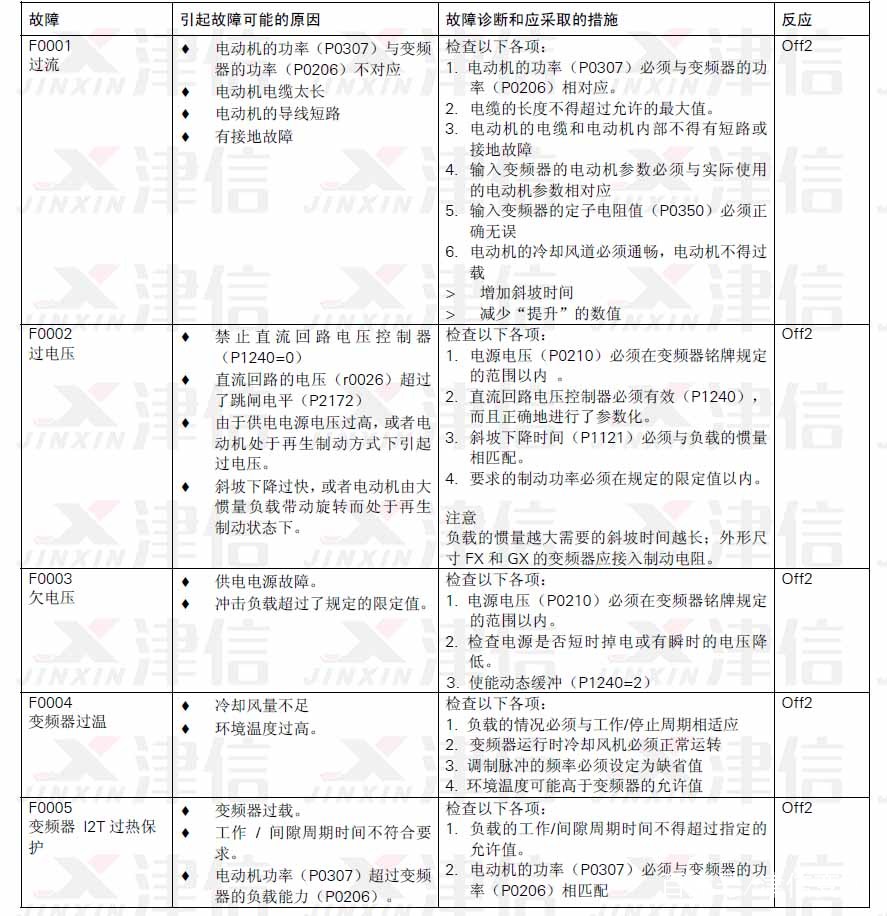 西門(mén)子變頻器在發(fā)生故障時(shí),會(huì)在LED顯示屏上出現(xiàn)故障代碼,故障代碼是以F開(kāi)頭的5位數(shù)表示,F(xiàn)代表Fault。