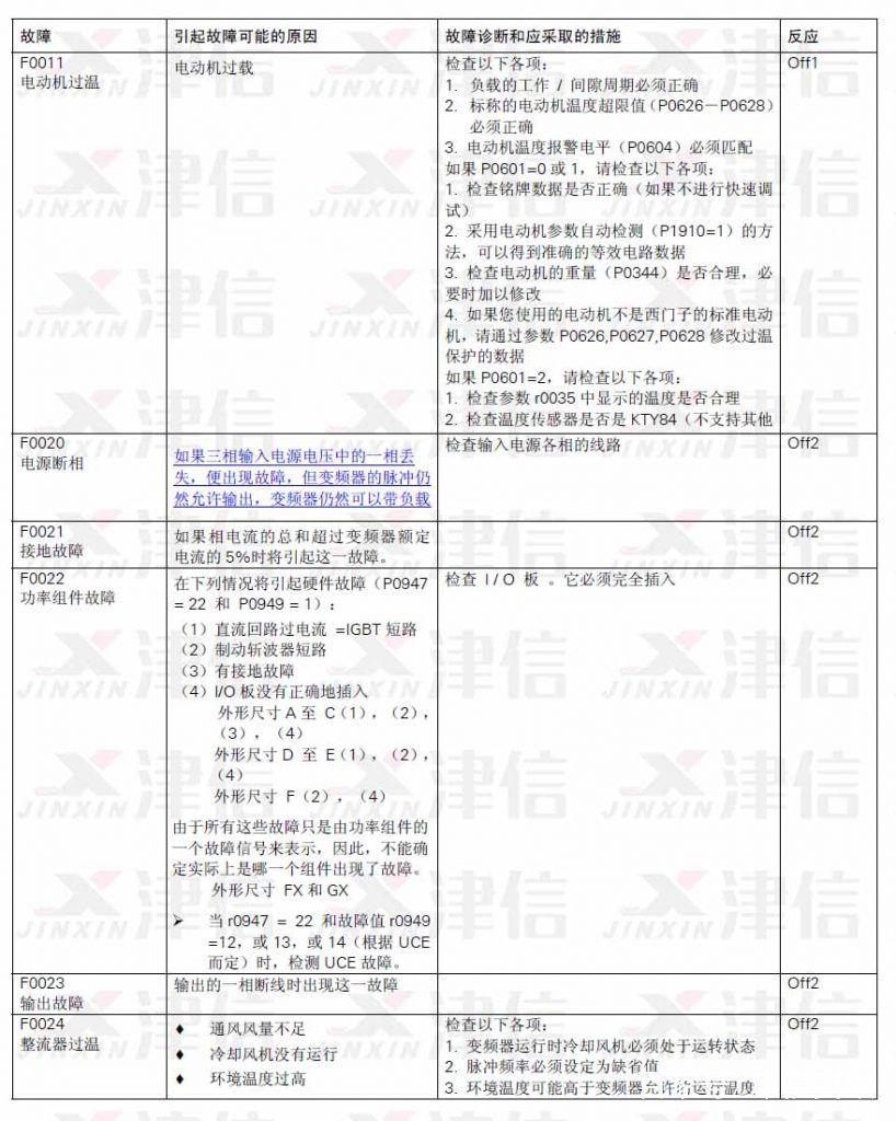 二、F0011電動(dòng)機(jī)過(guò)溫,F(xiàn)0020電源斷相,F(xiàn)0021接地故障,F(xiàn)0022功率組件故障,F(xiàn)0023輸出故障,F(xiàn)0024整流器過(guò)溫