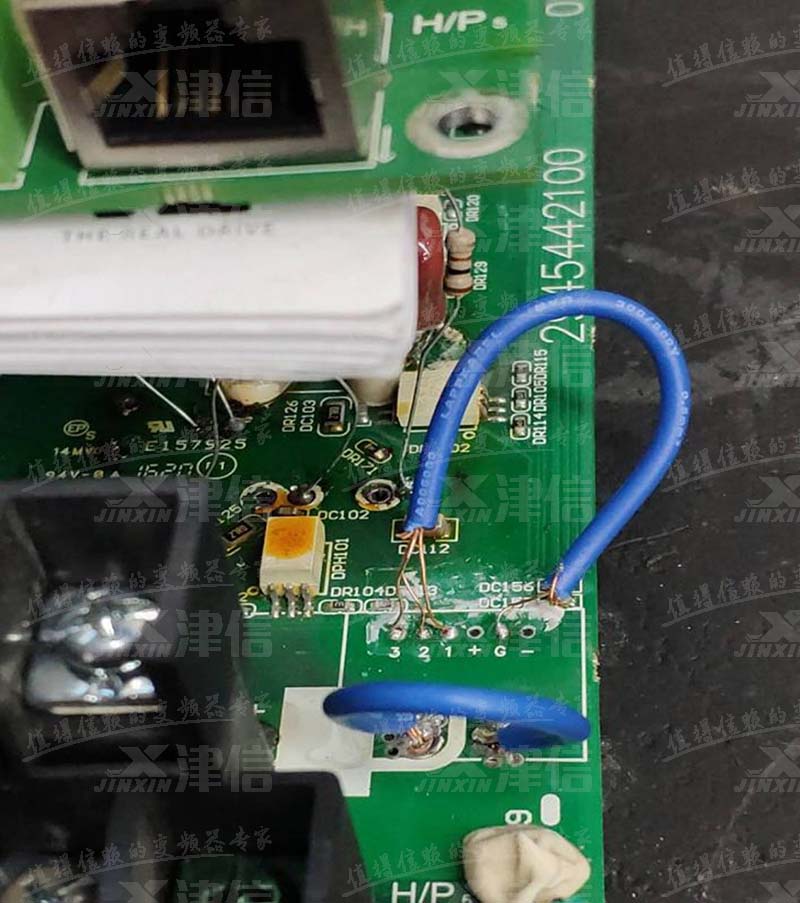 將電流傳感器拆除做單板測(cè)試,送電后仍然報(bào)警cd3.1,根據(jù)電流傳感器線路,將板卡上的G點(diǎn)和1,2,3三個(gè)點(diǎn)短接(如下圖3所示)   傳感器型號(hào):6900,(如下圖4所示)