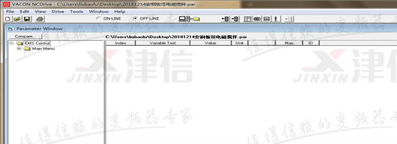 應用宏刷入成功后通過參數S6.2選擇該應用宏,然后通過NCDrive軟件和變頻器通訊,通訊成功后如下圖所示