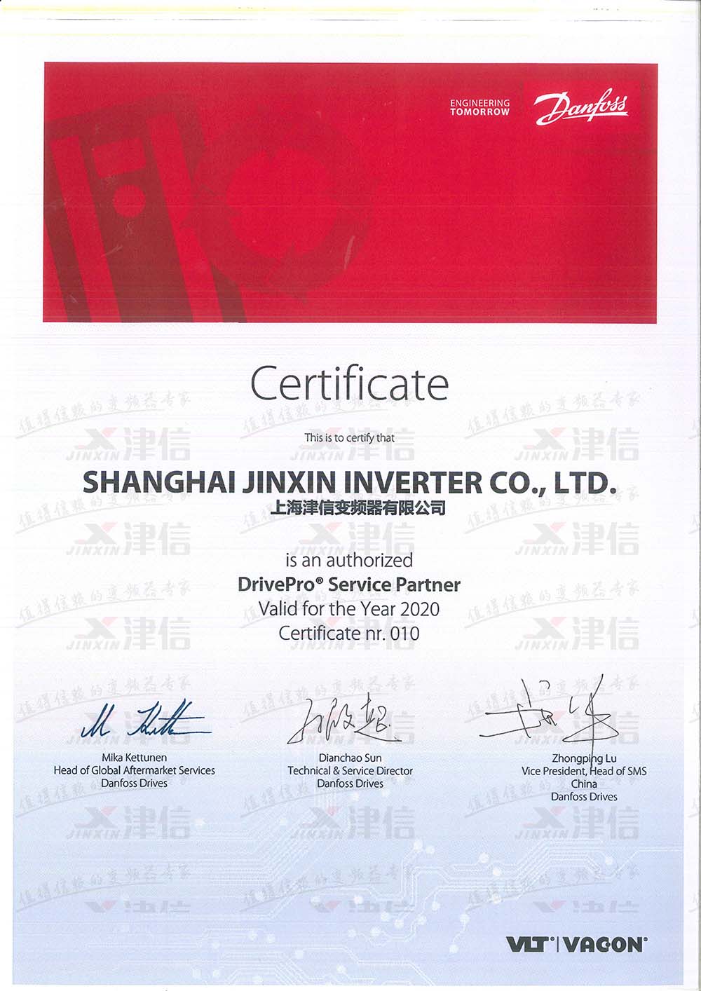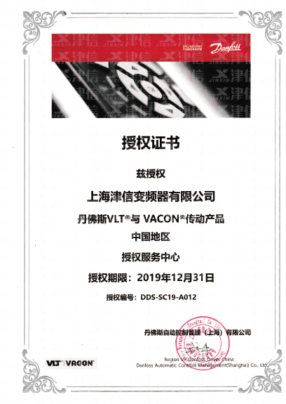 丹佛斯和偉肯變頻器服務(wù)中心授權(quán)證書(shū)